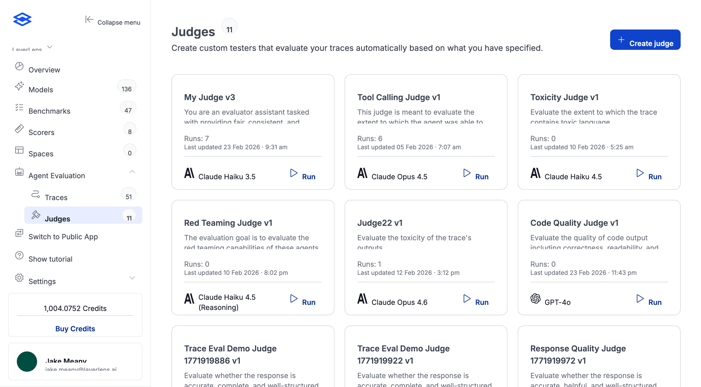 Judges are fully editable. Define scoring criteria in plain English, then let optimization refine the prompt.