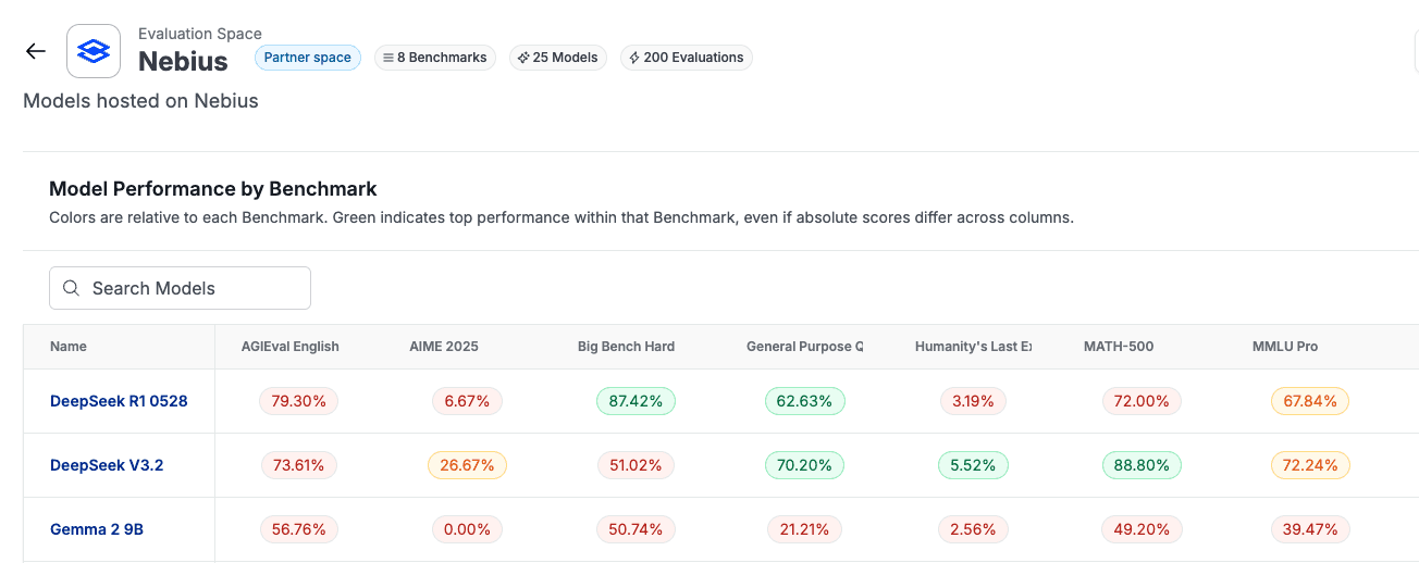 Nebius: 25 Models, 8 Benchmarks