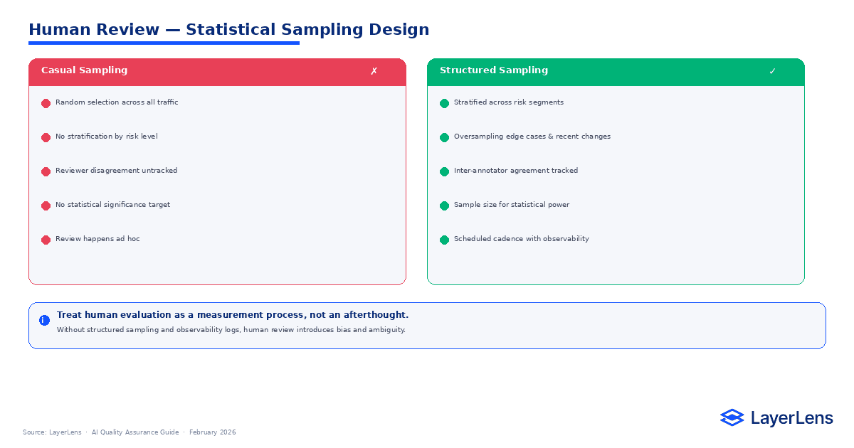 Human QA in LLM systems is a measurement process, not an anecdotal review layer.