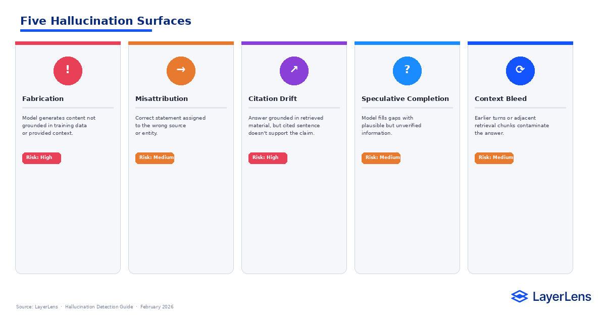 Each surface requires distinct detection strategies. Treating hallucination detection as a single binary classification collapses nuance.
